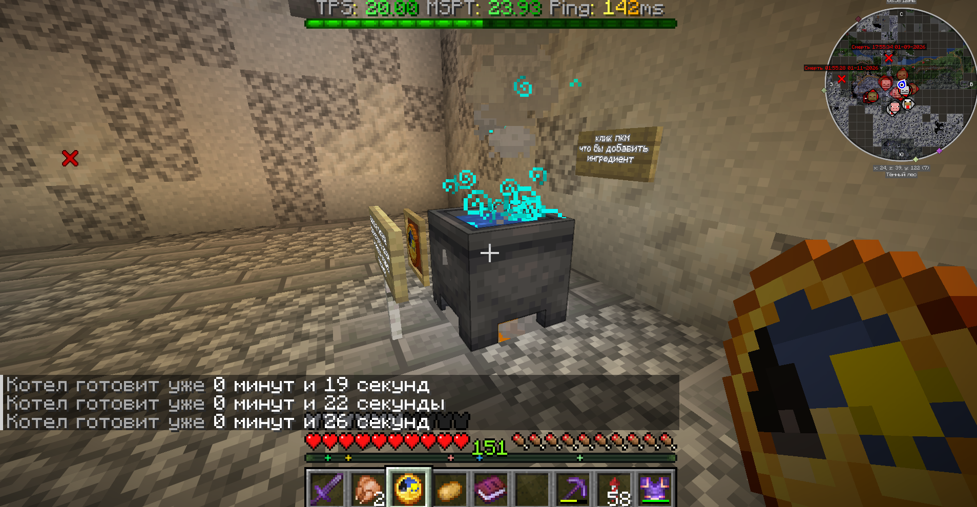 - ПКМ по котлу, чтобы разлить напиток.